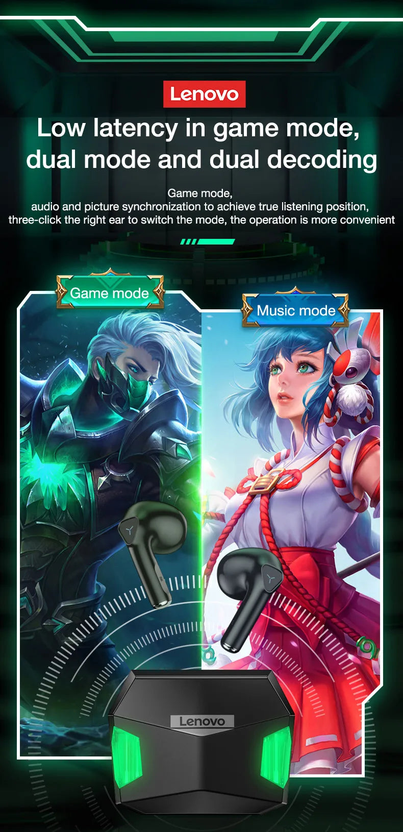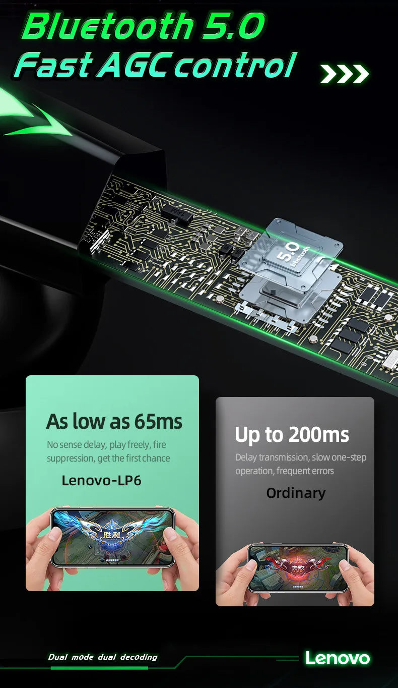 name: Lenovo LP6 Gaming Earbuds Low Latency Bluetooth