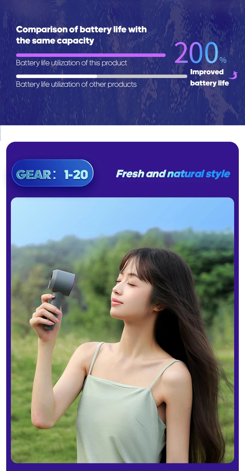 Experience Refreshing Breezes Anywhere: Upgrade your comfort with our handheld high-speed turbo fan, delivering a powerful airflow of up to 6 meters per second. Perfect for outdoor adventures, office work, or home relaxation, this fan ensures you stay cool and refreshed wherever you are.