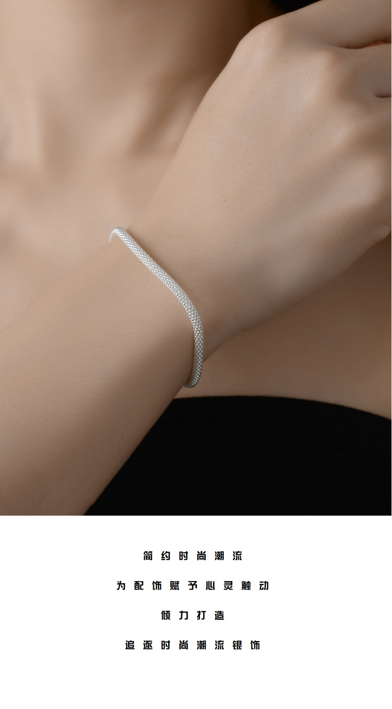 S925 Sterling Silver Sparkling Cylinder Bracelet