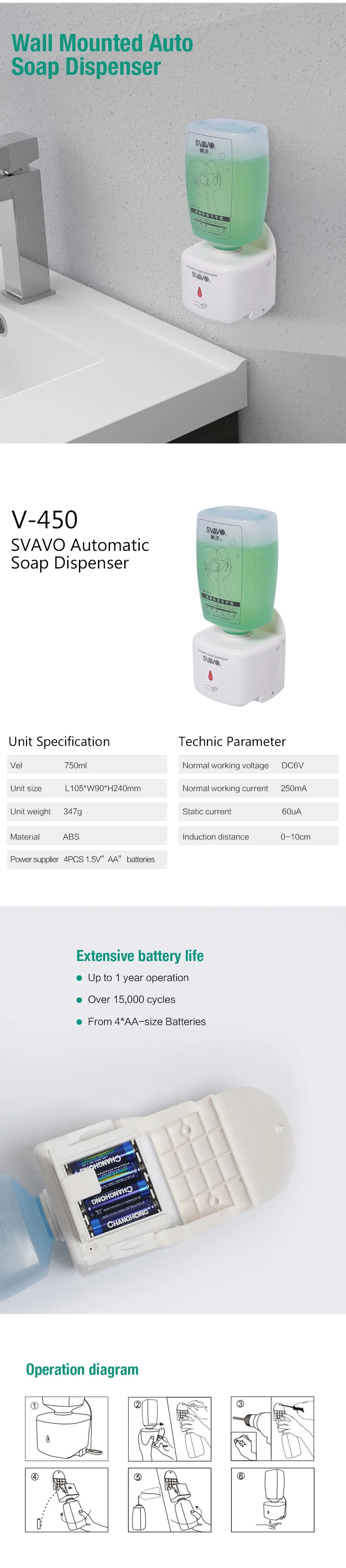SVAVO Wall Automatic Liquid Soap Dispenser 750ml Intelligent Smart Hand Sanitizer Shower Liquid Soap Dispenser for Bathroom